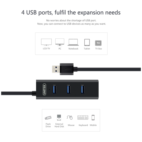 Unitek Y-3089 USB 3.0 Hub 4 ports with Micro USB Power Port
