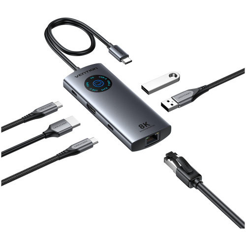 Vention HUB USB-C 3.2 Gen1/8K-HDMI/Gb/PD + LED Display & Switch TQZHB