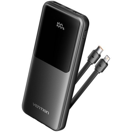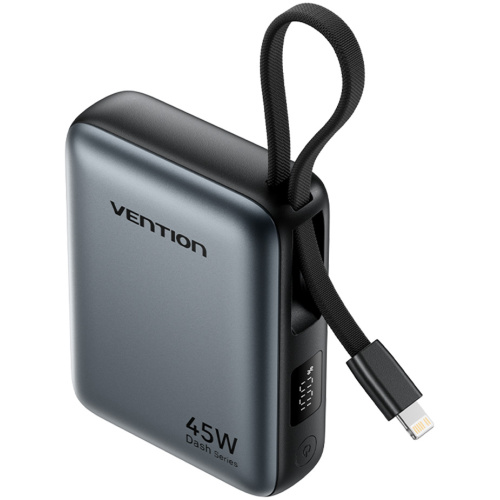 Vention Powerbank 10000mAh 45W Built-in USB-C & Lightning Cables FKMH0 Grey
