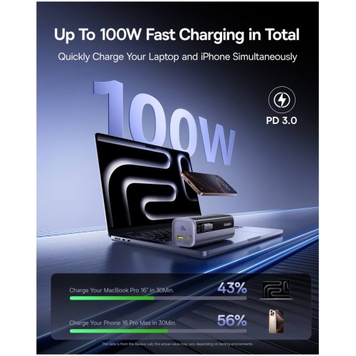 Baseus Powerbank 100W 10000mAh EnerGeek GR11 with Retractable Cable Grey