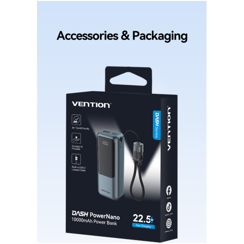 Vention Powerbank 10000mAh 22.5W Built-in USB-C Lanyard + Display FKOH0
