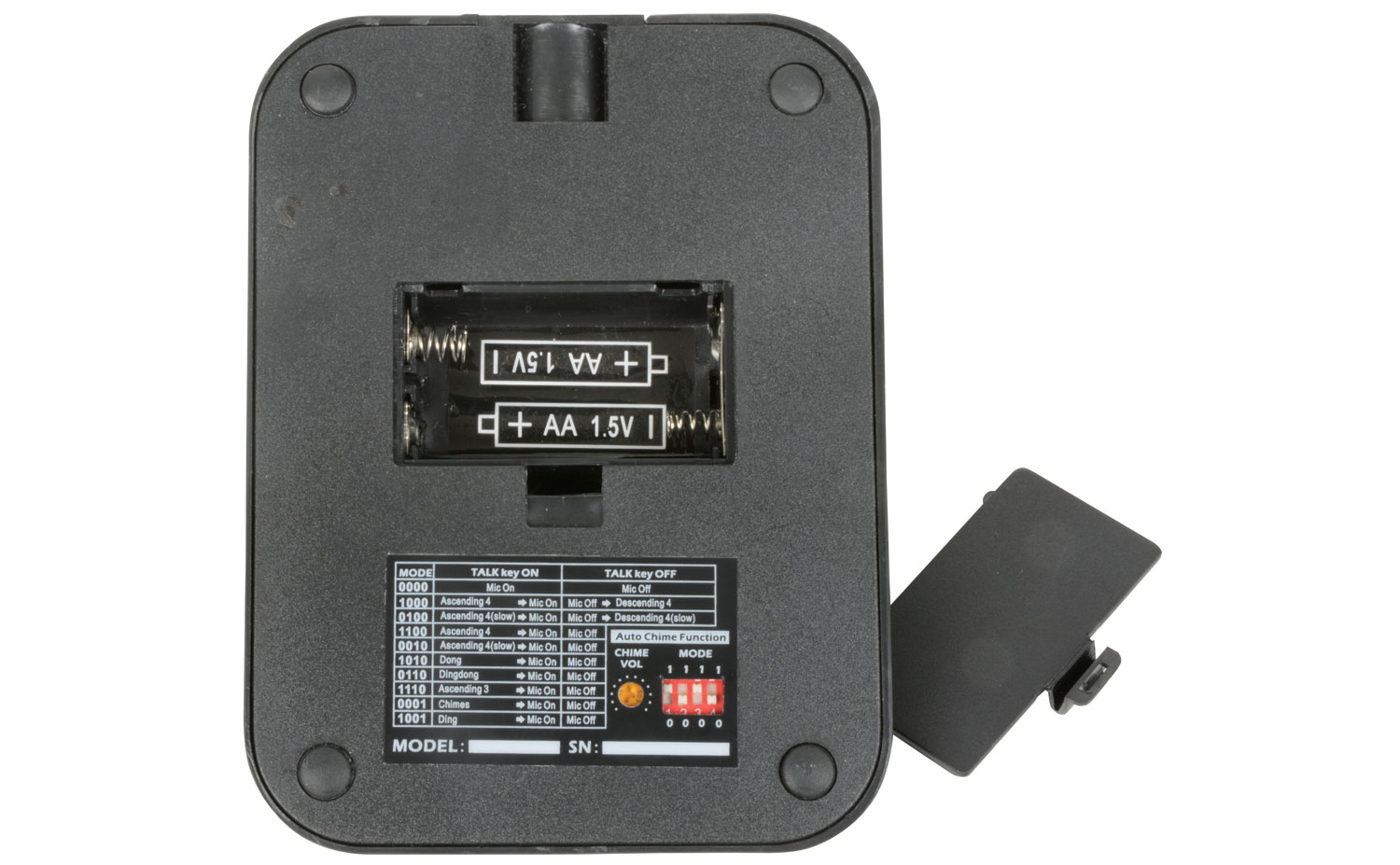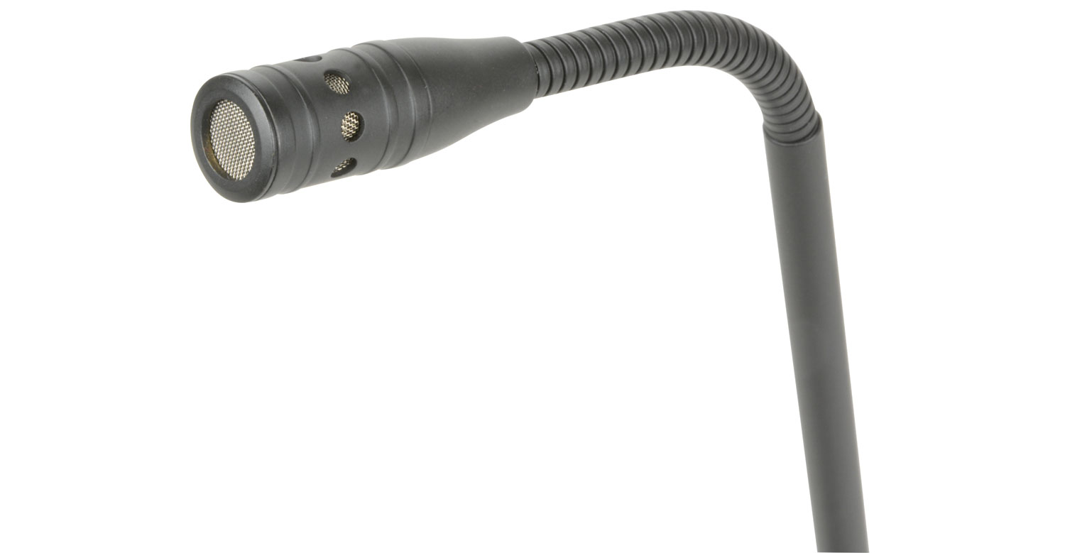 A gooseneck condenser microphone with selectable chime function. Microphone connection to the base is via XLR and output is on XLR at the rear. Power is provided to the microphone capsule either from 2 x AA batteries in the base or from 5Vdc via the supplied USB lead. The base is also home to a latching paging button on top and a chime section on the underside. DIP switches offer a selection of chime settings, governed by a rotary volume control. Designed for remote paging and announcements.