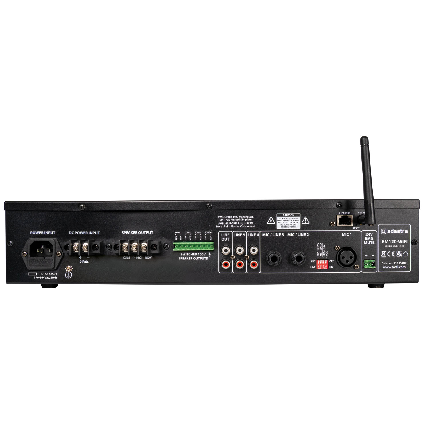Adastra RM240-WIFI 240W Amplifier 100V with 4 Zones FM/USB/BT/WiFi 953.235UK