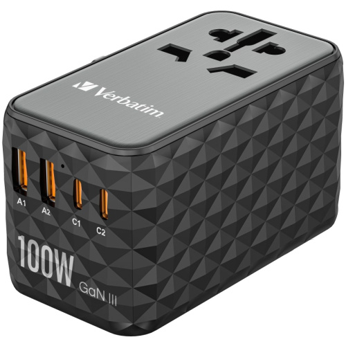 Verbatim Charger Travel Adapter World to World GAN III 100W 2xC 2xA UTA-06
