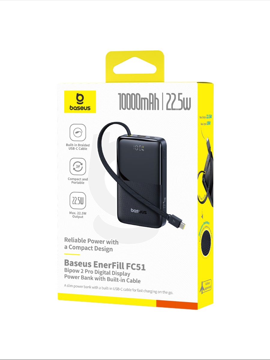 - Built-in Braided USB-C Cable – Say goodbye to tangled or forgotten cords. The built-in 10,000-bend-tested nylon USB-C cable keeps charging simple and clutter-free—ideal for shopping, travel, airports, libraries, and more. Travel light and stay powered wherever you go