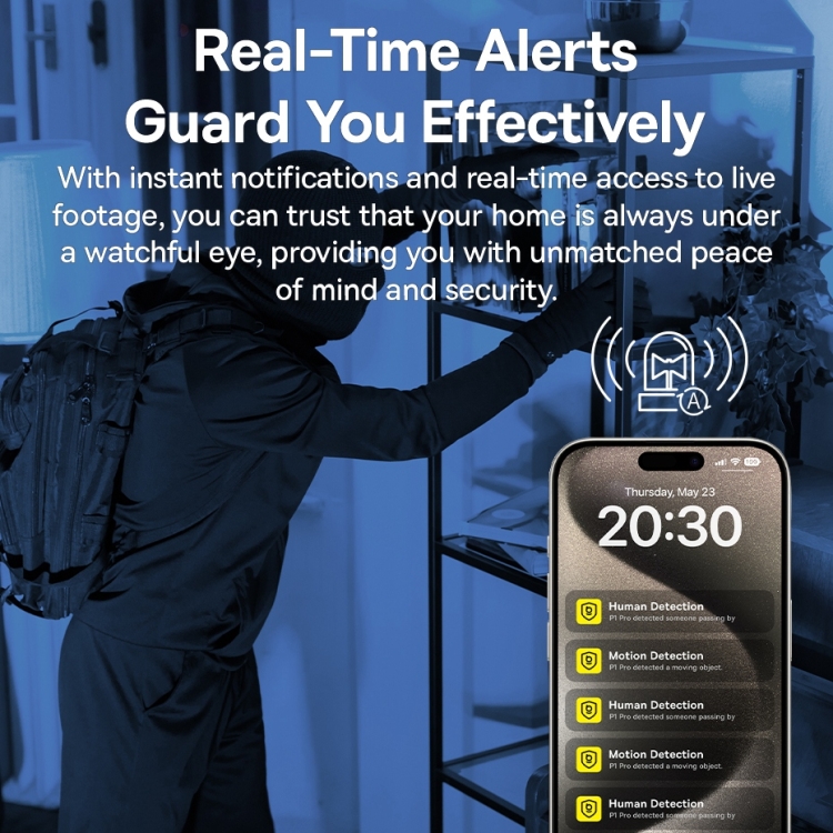 • AI Detection: Human, motion, sound, and baby crying recognition.