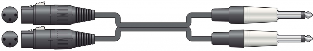 High quality audio leads for exceptional sound quality and reliability. Twinned high grade cable comprises 2 insulated pure copper cores and global shielding. The durable PVC sheath has a soft texture to avoid knotting. Terminated at one end with 2 x female XLR connectors and at the other end with 2 x 6.3mm mono jack plugs