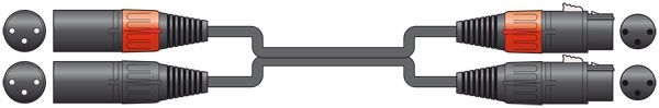 - Terminated at one end with 2 x female XLR connectors and at the other end with 2 x male XLR connectors