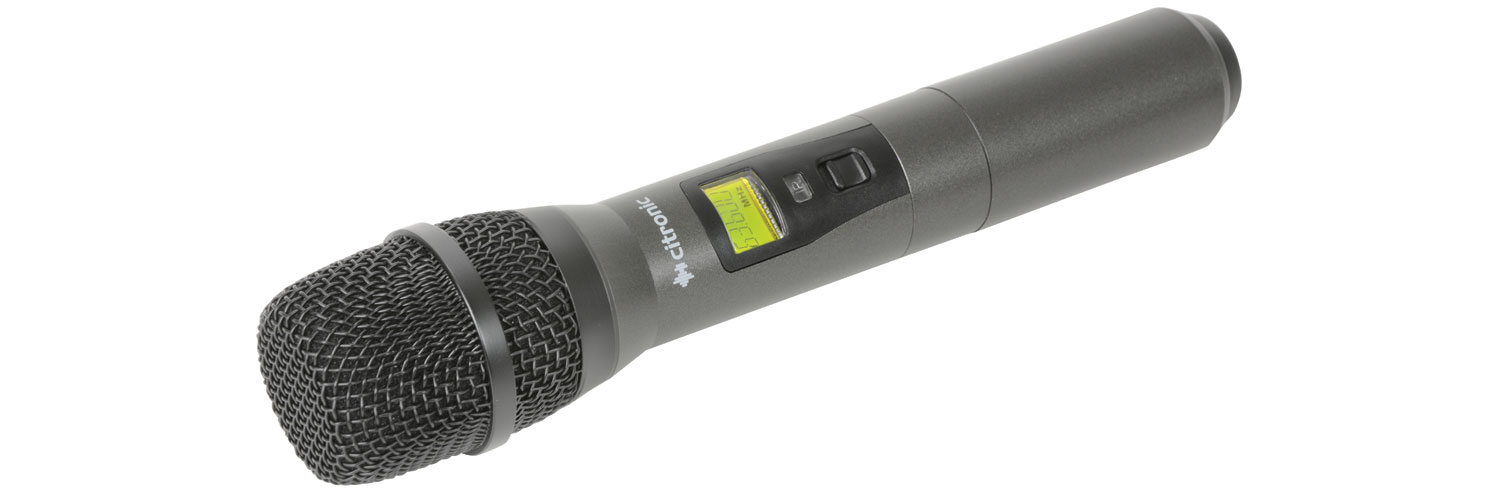 Single channel PLL tuneable UHF wireless system with a handheld transmitter. The receiver unit is compatible with standard 19" racks using the included rack ears and front mounting antenna accessories. The RF carrier frequency is selected on the receiver and synchronized to the transmitter via infra-red at the touch of a button. Up to 4 RU105 systems can be operated together on the EU licence-free band.