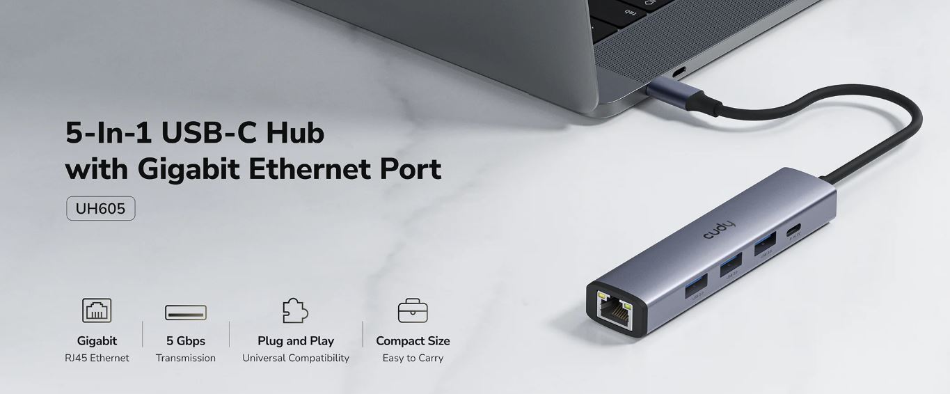 Cudy Hub USB-C 1xGigabit Lan/3xUSB-A/1xUSB-C UH605