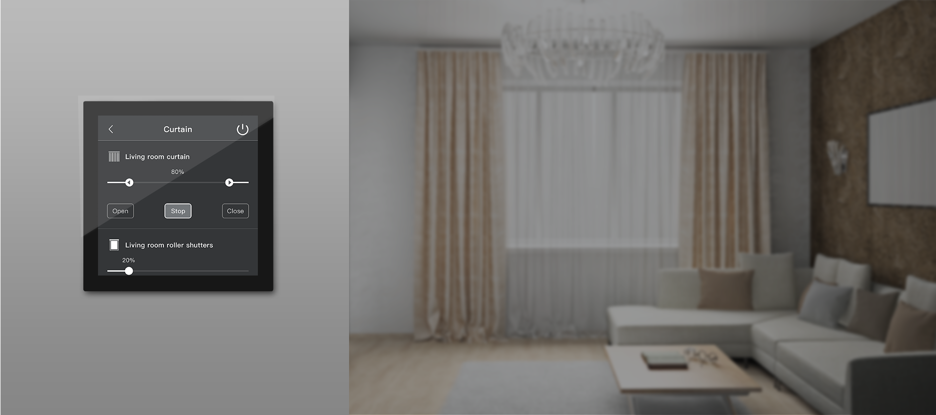 - Curtain control: Up to 8 curtains are supported. Support open / close, stop, percentage adjustment