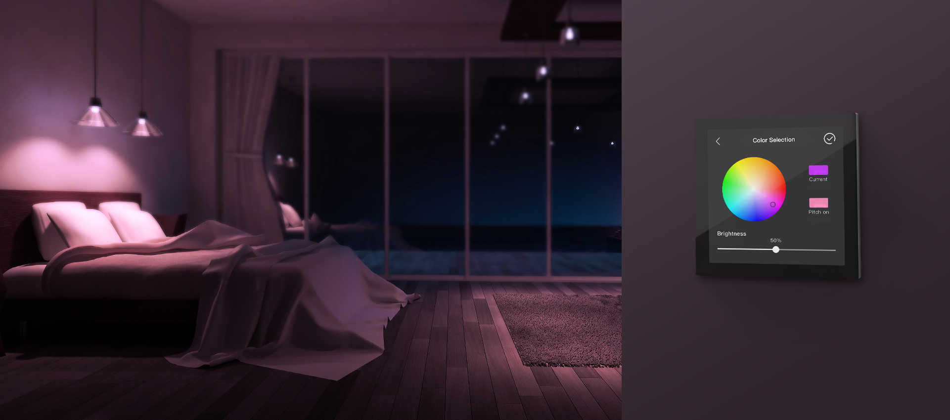 - Control lighting, curtain, scene, air conditioning, floor heating, music and fresh air