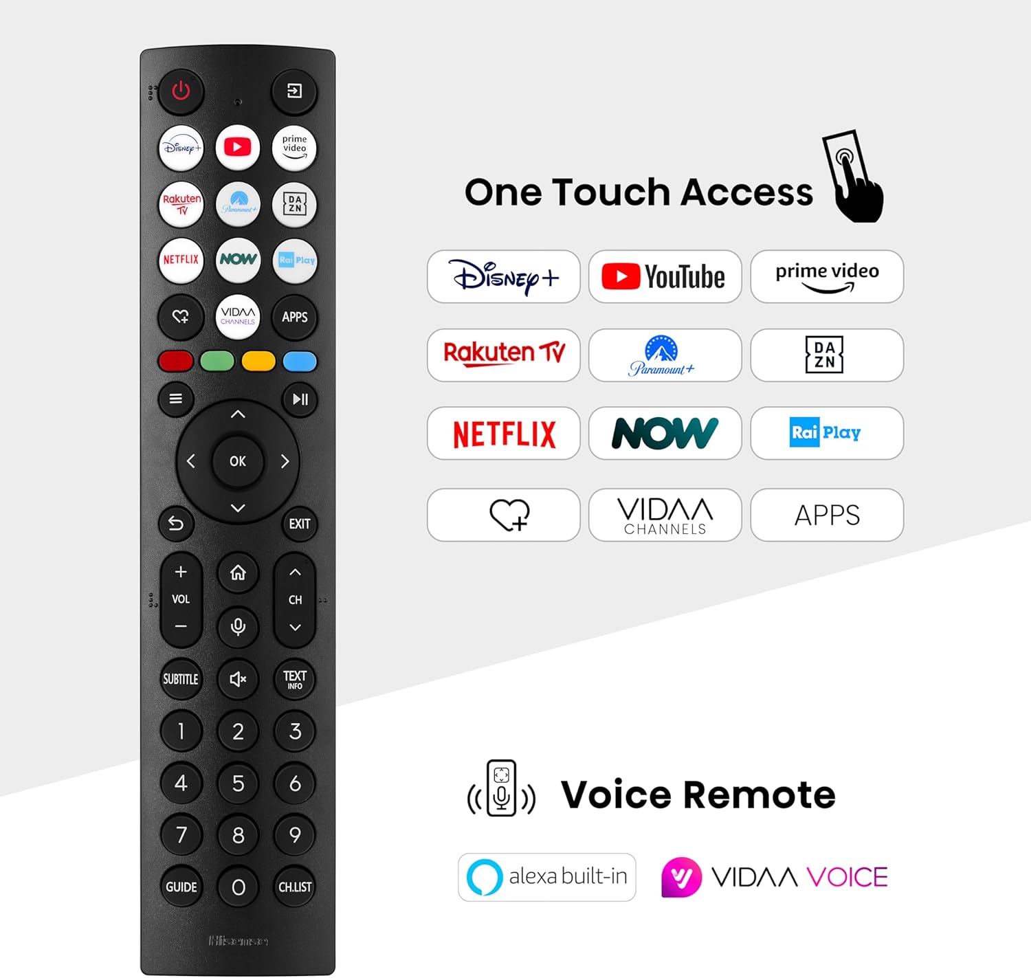 - Remote Control with Voice Control Control the TV with your voice, just press the microphone button on the remote. You can change the channel, adjust the volume and much more.