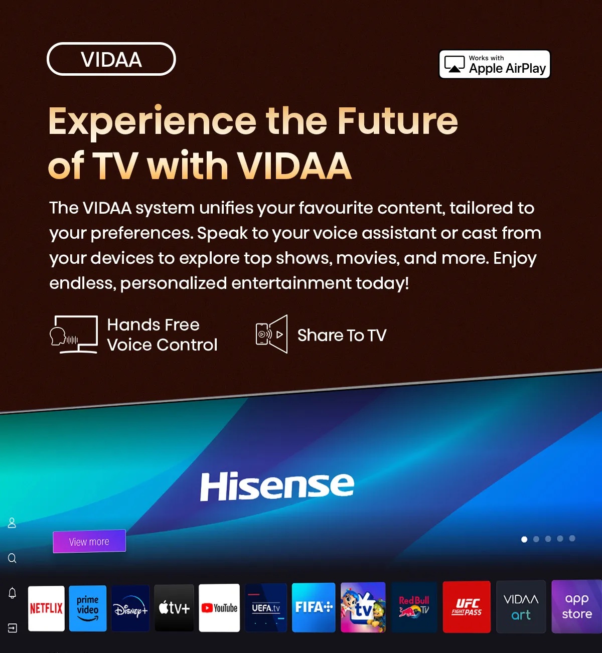 - Smart Connection State-of-the-art VIDAA OSÂ seamlessly unifies your favorite international and local content, tailored to your unique preferences. With the help of voice control functions, TV operating becomes easier and smoother.