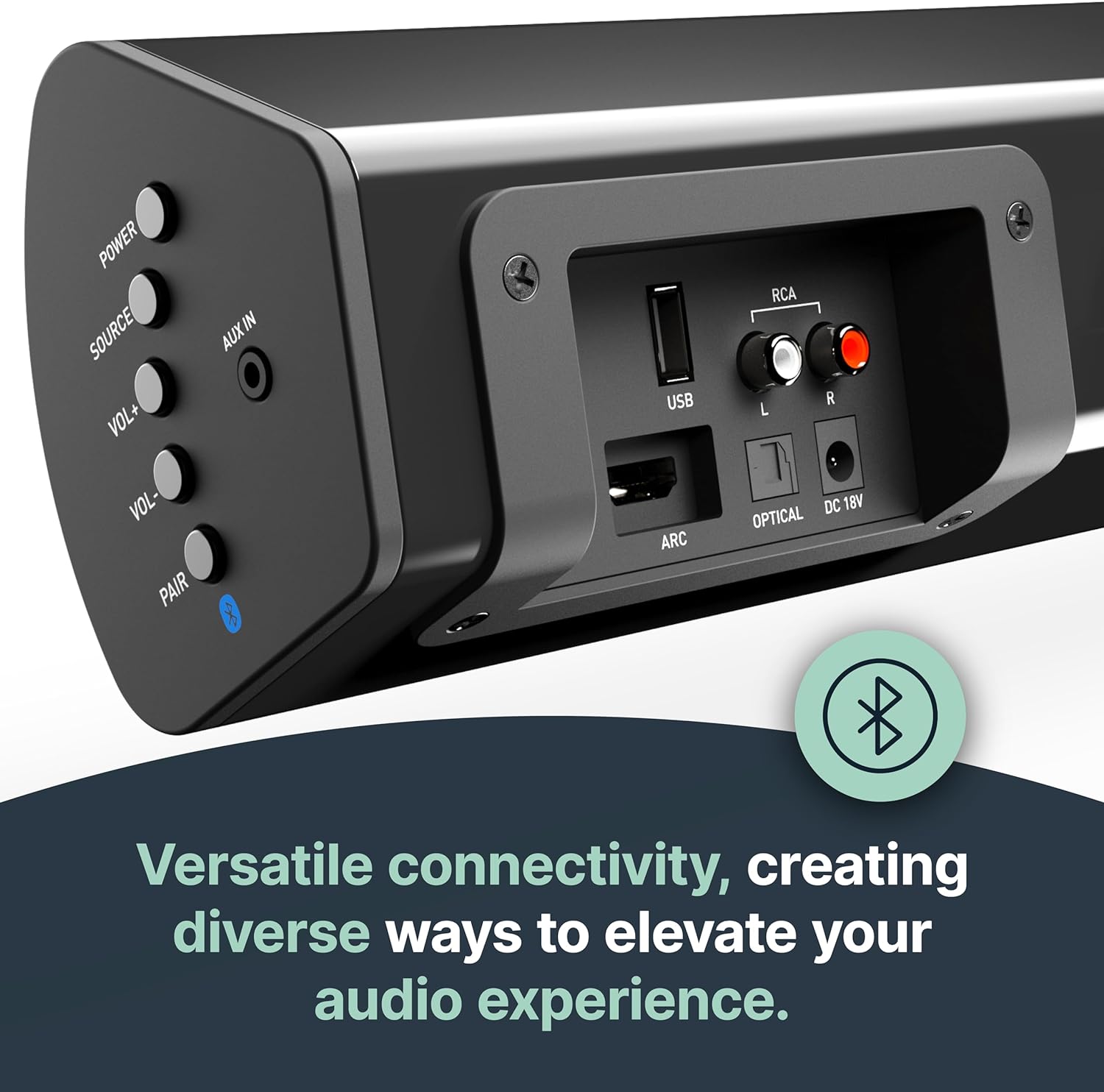 • 𝗕𝗟𝗨𝗘𝗧𝗢𝗢𝗧𝗛, 𝗪𝗜𝗥𝗘𝗟𝗘𝗦𝗦 𝗦𝗨𝗕𝗪𝗢𝗢𝗙𝗘𝗥, 𝗛𝗗𝗠𝗜 𝗔𝗥𝗖: Elevate your audio immersion with our Teton sound bar, which boasts state-of-the-art Bluetooth connectivity, an impactful wireless subwoofer for deep bass resonance, and seamless integration through HDMI ARC technology.