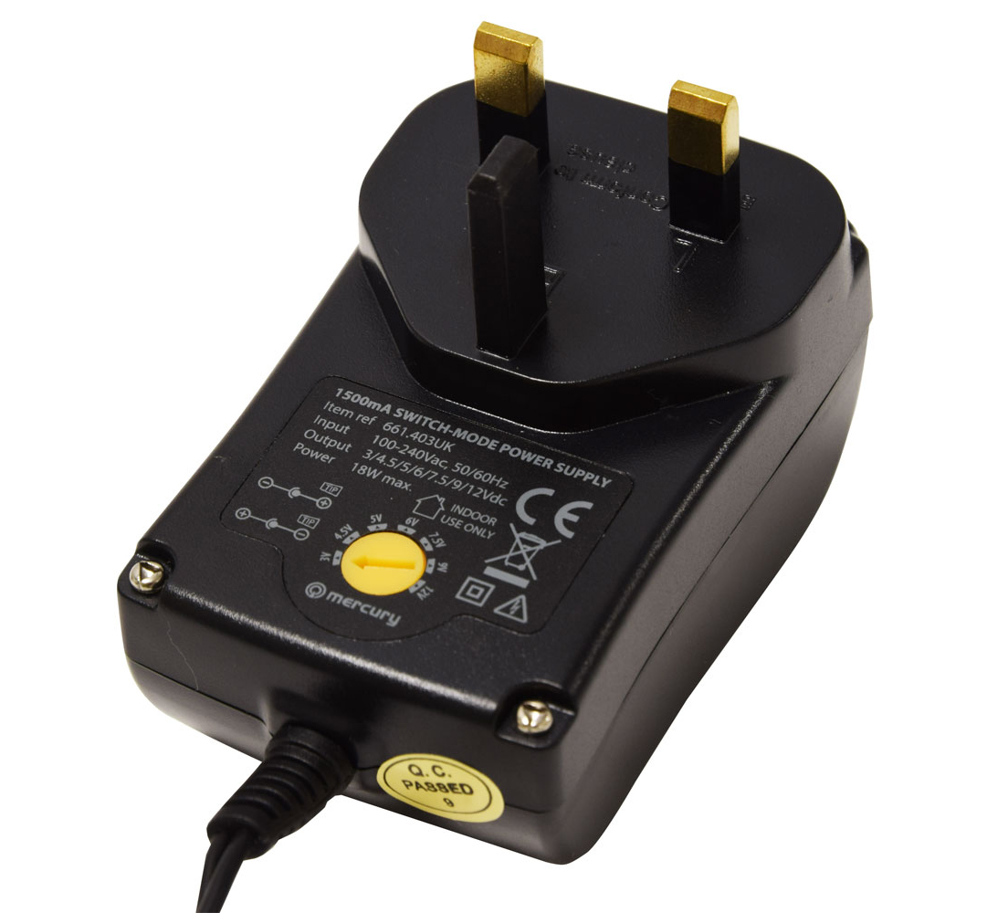 This compact, energy efficient switch-mode power supply gives up to 1500mA with a variable output from 3V to 12V. Suitable for most low power electronic products such as CD Players, Walkmans, Radios, Portable Games Consoles, MP3 players etc.