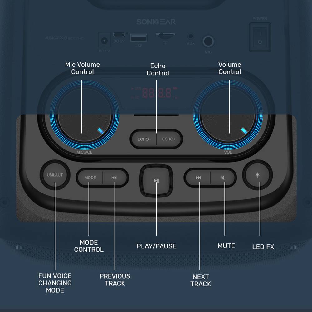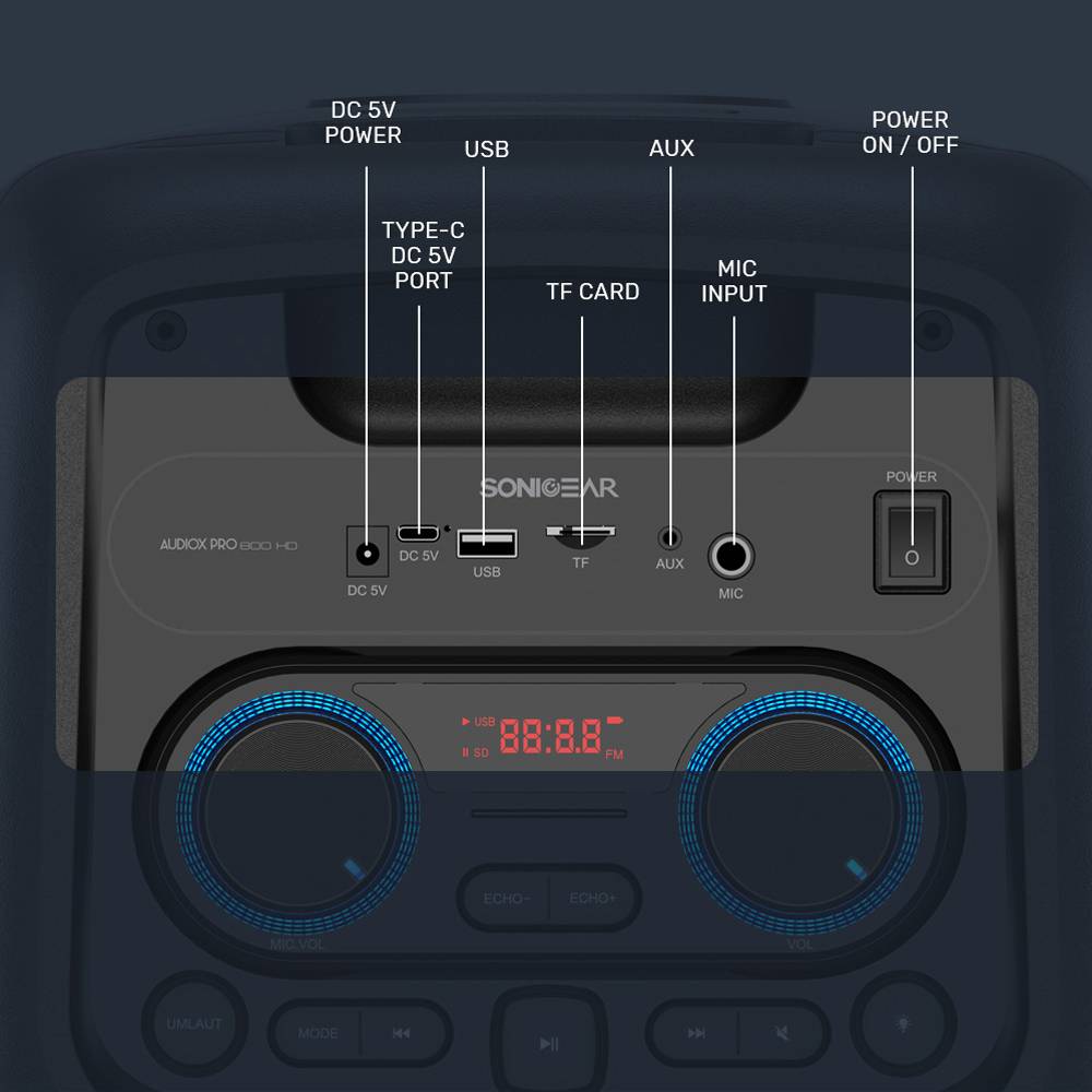 SonicGear AudioXPro800HD 2 x 8” Portable Karaoke Speaker with Voice Changer & 2 x Wireless Microphones included