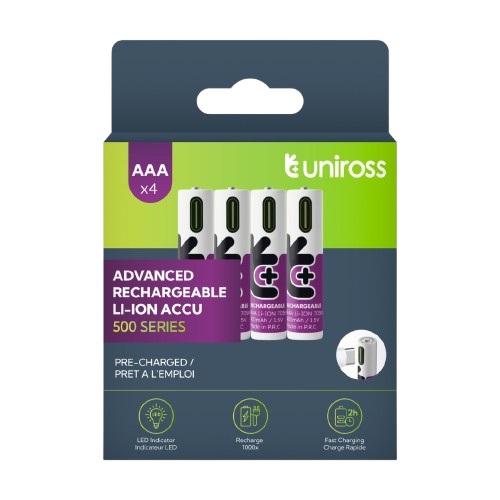 - Uniross USB-C Rechargeable AAA Battery (Pack of 4) is designed for those who demand reliable, consistent power