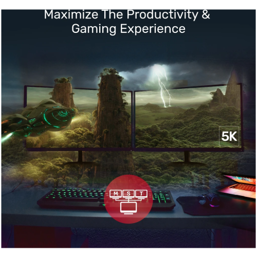 • Windows OS is able to turn on the Screen Mirroring and Extend on the external monitors. MacOS does not support MST. A single extra desktop can be displayed on the external monitor, up to two devices