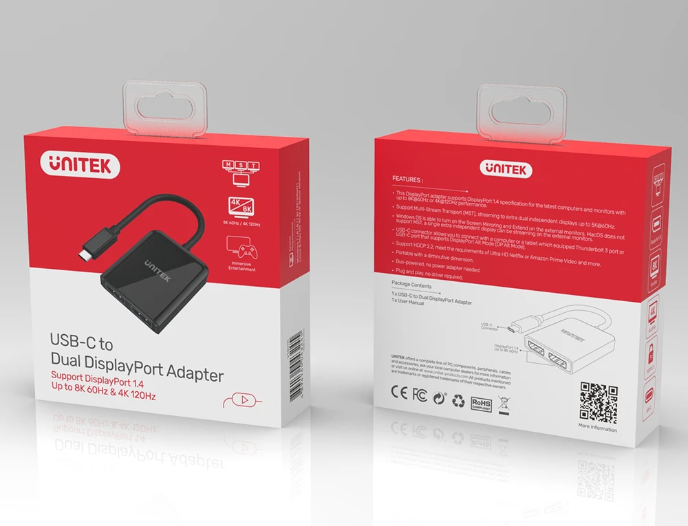 Unitek V1407A Type-C To Dual DP 8K 60Hz Adapter with MST Dual Monitor