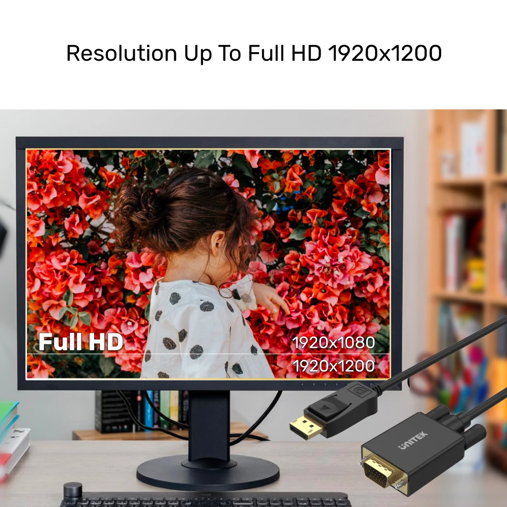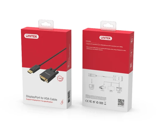 Unitek Y-5118F DisplayPort to VGA Cable 1.8m Black/Gold Plated