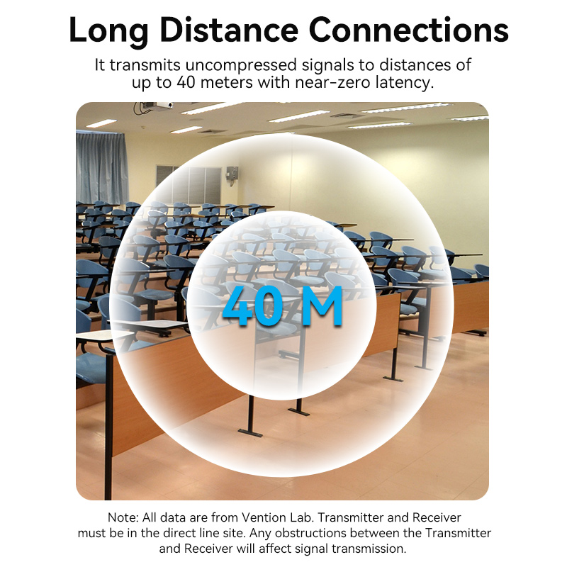 - Effortless Plug & Play Setup: Forget about complicated installations or the need for additional drivers. The Vention Wireless HDMI Transmitter and Receiver are designed for immediate use; just connect the transmitter to your source device, and link the receiver to your display for instant, hassle-free streaming.