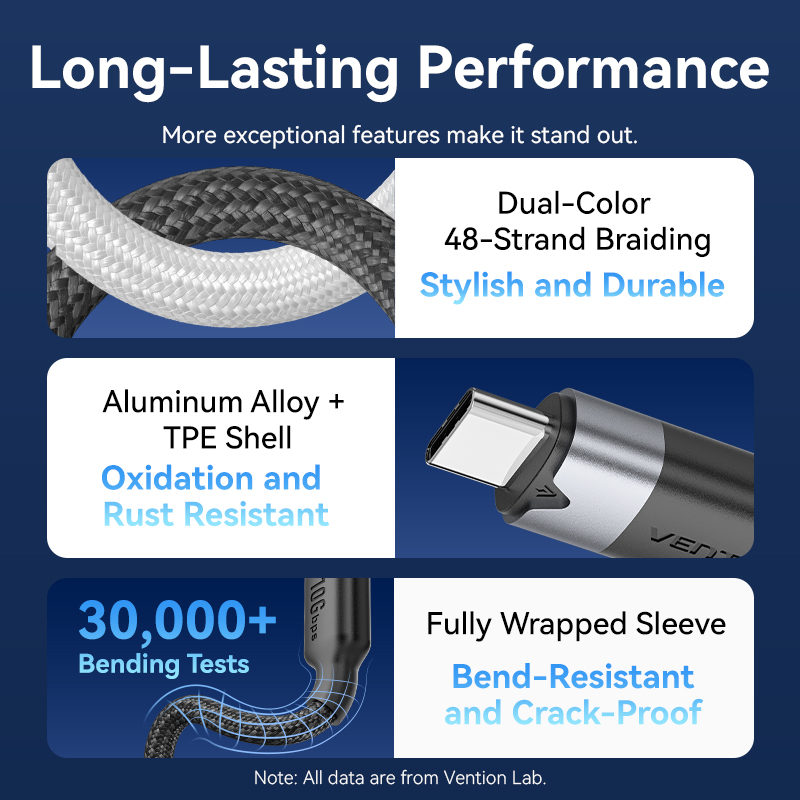 Vention IT Cable USB-C 3.2 Gen2 M-F 1.0m Braided Aluminum Black TRFBF