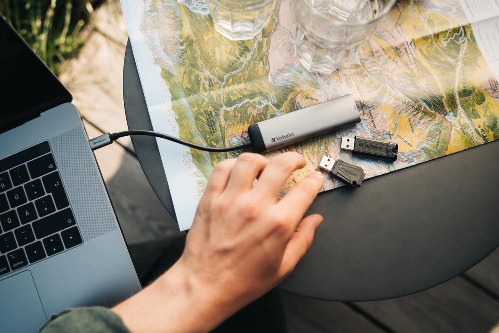 The PinStripe USB Drive from Verbatim has a push and pull sliding feature which protects the USB connection when it is not in use without the need for a separate cap which is easily lost.