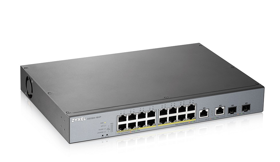 Zyxel SP 18-Port Gigabit PoE Cloud Managed Switch, 16 x PoE 250W GS1350-18HP