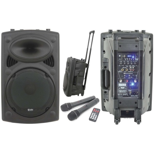 QTX QR15PA 15” Professional Portable Karaoke & PA Speaker with 2x Wireless Microphones, Bluetooth USB & FM 178.848UK
