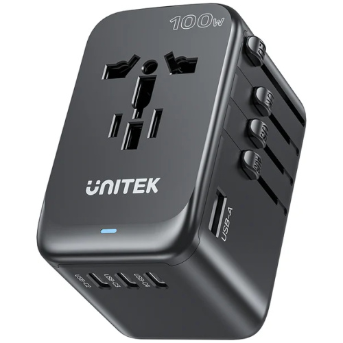 Unitek World Travel Adapter & 100W Charger EU/UK/US 4xUSBC+1xUSBA P1123A