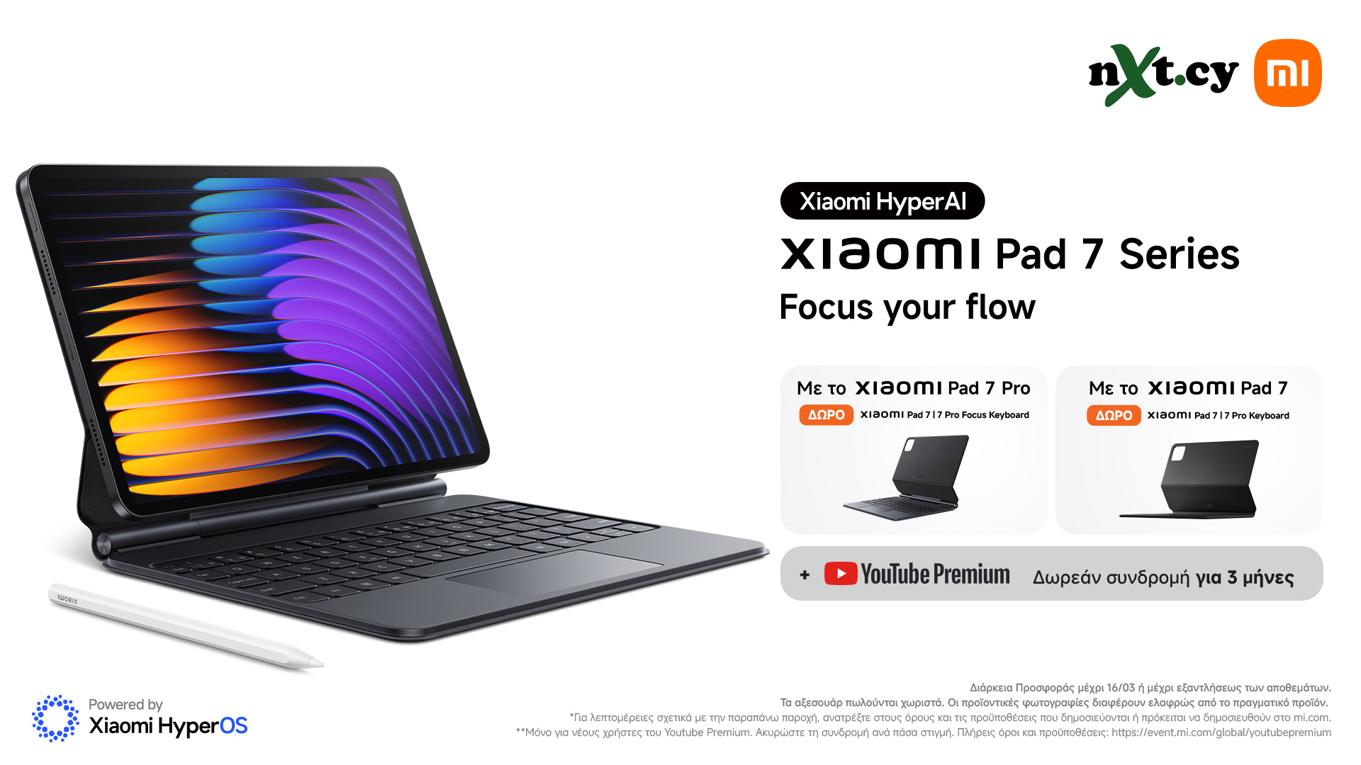 Την περίοδο από 6 Μαρτίου μέχρι και 16 Μαρτίου 2025, με την αγορά συσκευής Xiaomi Pad 7 Pro θα δίνεται δώρο η θήκη πληκτρολόγιο Focus Keyboard που μετατρέπει το tablet σε ένα working station με την εμπειρία χρήσης ενός laptop, καθώς και ρύθμιση της γωνίας θέασης.